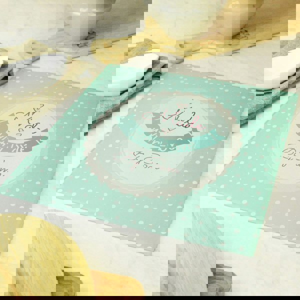 You can personalise this glass chopping board with a message up to 12 characters in length.