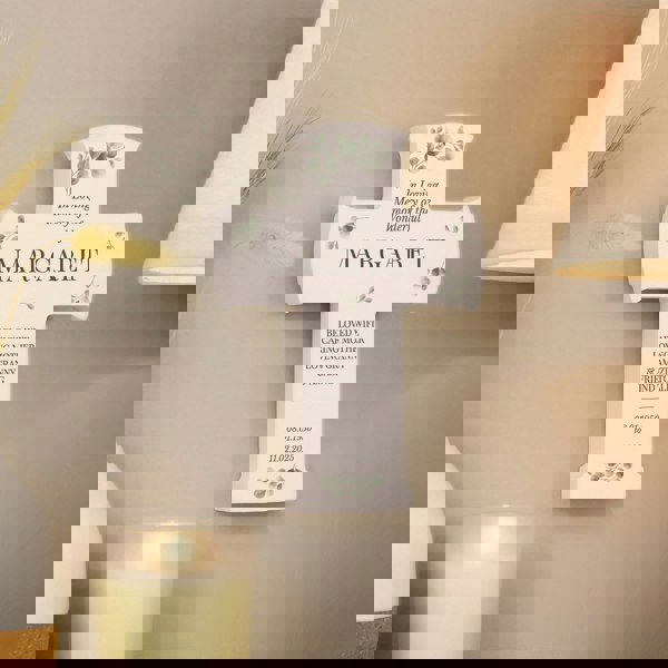 Crafted with care, this elegant cross ornament can be personalised with a message over 12 lines, making it a truly personal tribute.