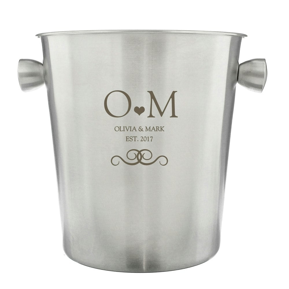 Add a touch of elegance to any occasion with this stunning Personalised Monogram Stainless Steel Ice Bucket.