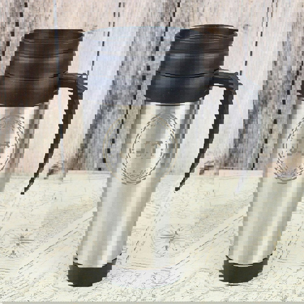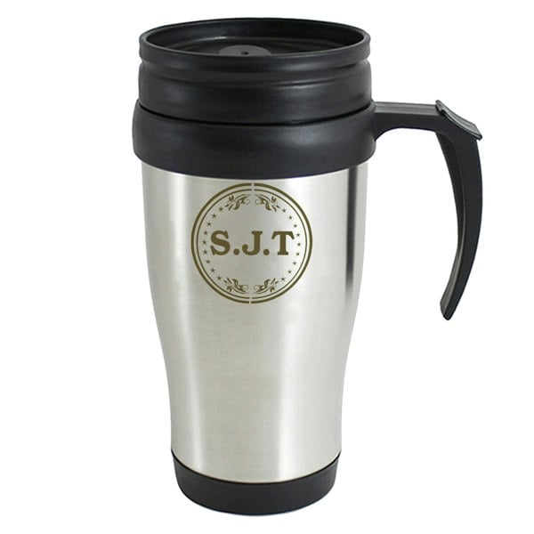 This Monogram Stainless Steel Thermal Travel Mug can be personalised with initials up to three letters with 2 full stops (M. L. S).