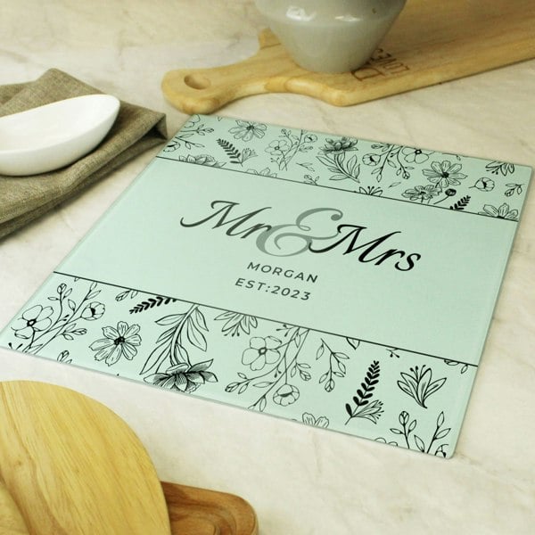 You can personalise this glass chopping board with 2 lines of text, containing up to 30 characters per line.