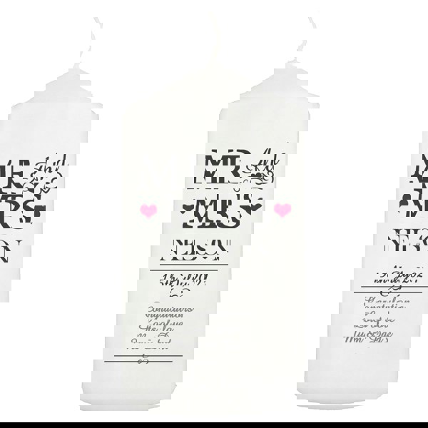 Personalise this Mr & Mrs Candle with a surname up to 15 characters, a date up to 20 characters and 3 lines of message, 15 characters per line