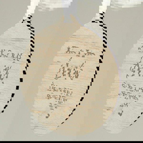 This Personalised Mr & Mrs Round Wooden Decoration adds a personal touch to the home.