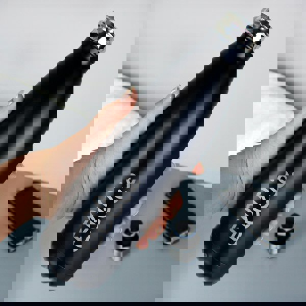 Stay hydrated on the go with our Personalised Black stainless steel 500ml double wall vacuum drinks bottle. The bottle is great for lounging around the pool and keeping fully hydrated whilst topping up your tan. This is also ideal for taking to the gym or having on your desk at work.