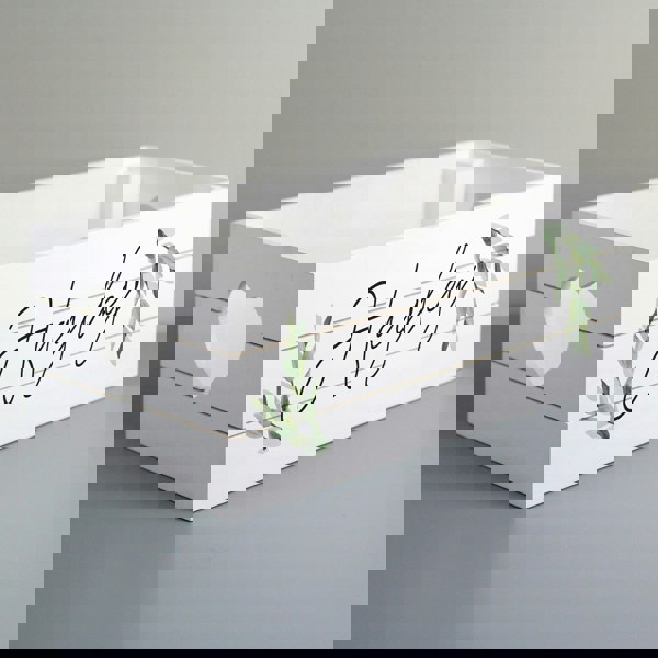 This personalised white wooden crate is a great way to add a personal touch to any home!
