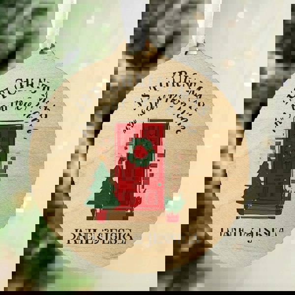 This Personalised New Home Round Wooden Decoration adds a personal touch to the Christmas tree.