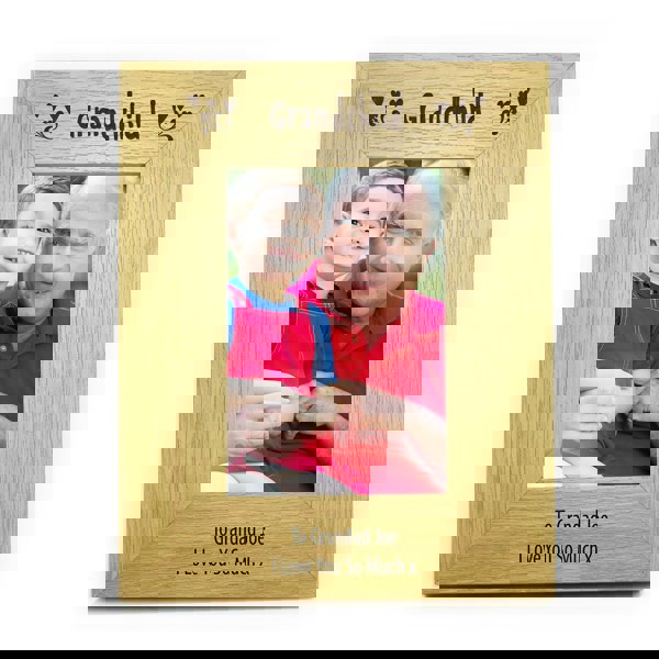 Personalise this Grandchild 4x6 portrait wooden frame with a message over 2 lines of 30 characters per line. The word 'Grandchild' is fixed. All personalisation is case sensitive and will appear as entered.