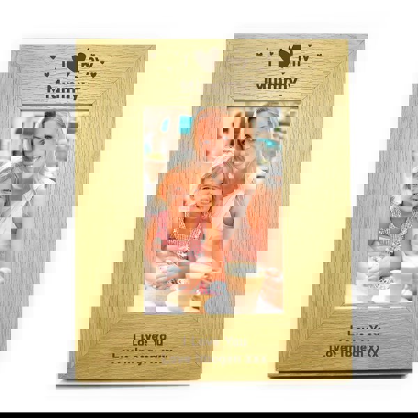Personalise this I Heart My. . . 4x6 Wooden Frame with a name at the top (i. e. Mummy) up to 12 characters and 2 lines below the photo, 30 characters per line.