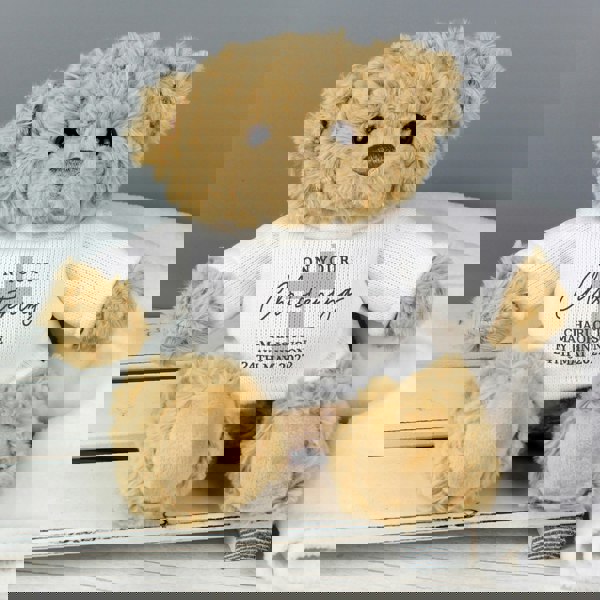 The personalised On Your Christening Teddy in a t-shirt is the perfect way to celebrate their Christening.