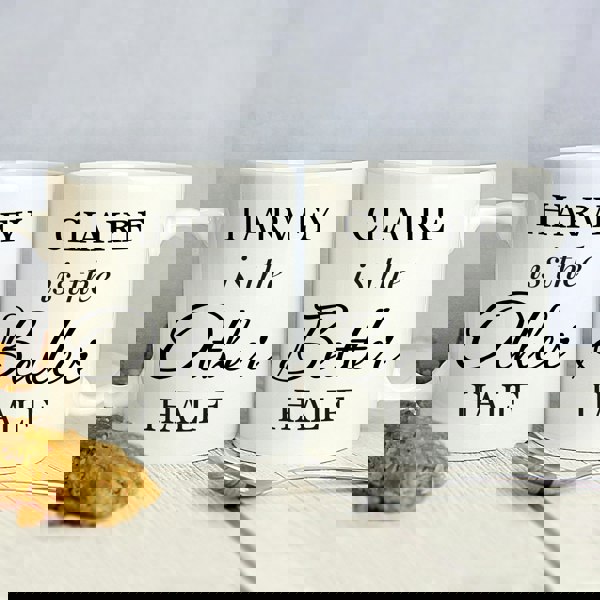 This stylish personalised Other Half and Better Half Mug Set is ideal for clearly distinguishing who is the better half!
