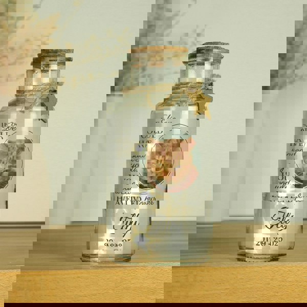 Celebrate the life and cherished memories of your beloved pet with our Personalised Pet Memorial Photo Upload LED Light Up Jar