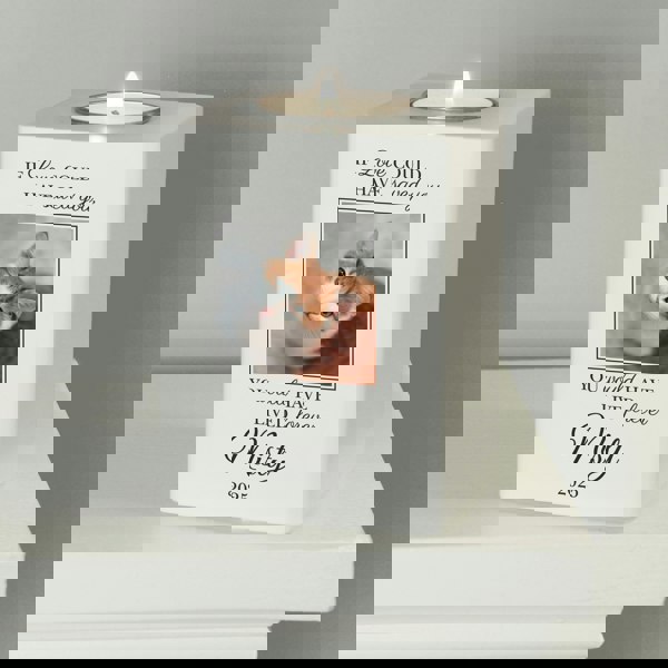 Celebrate the life and cherished memories of your beloved pet with our Personalised Pet Photo Upload Memorial Tealight Holder
