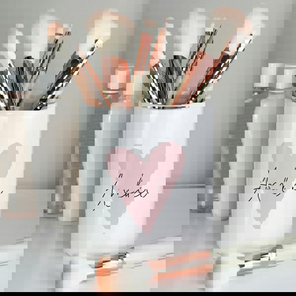 This Personalised Pink Heart Ceramic Pot is a great way to organise items like make up brushes.