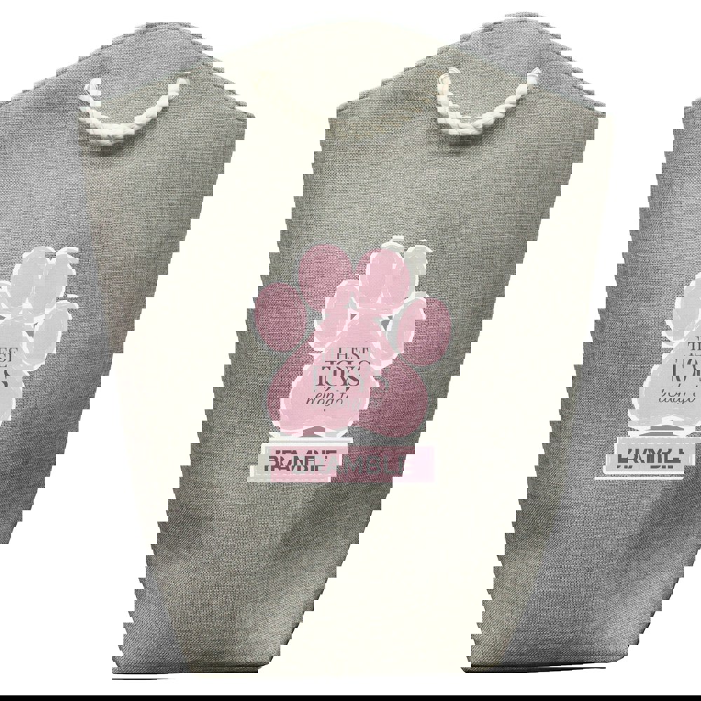 Our Personalised Pink Paw Print Storage Bag is perfect for keeping dog toys and blankets tidy.
