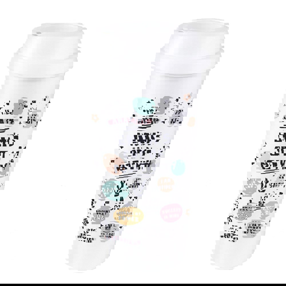 "CUP OF POSITIVITY" is fixed text and cannot be changed.