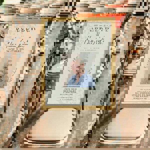 This personalised memorial photo frame is a touching way to honour and include a beloved family member who is unable to be present for the special occasion.