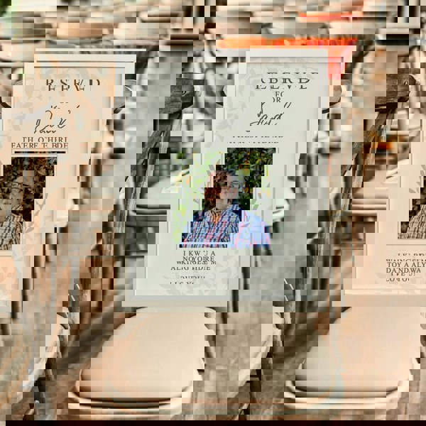 This personalised memorial photo frame is a touching way to honour and include a beloved family member who is unable to be present for the special occasion.
