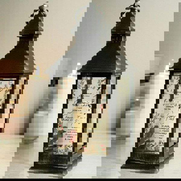The lantern can be personalised with up to 4 lines.