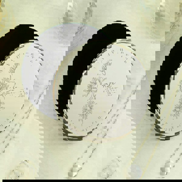 Please note, the name of the month and flower are fixed elements of the design and cannot be amended or removed