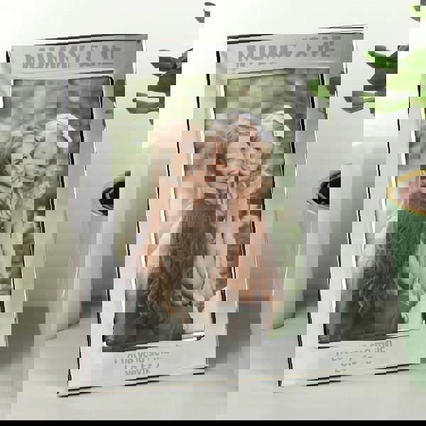 Personalise this silver 5x7 Mummy & Me photo frame with any message over 2 lines at the bottom of the frame, up to 30 characters each.