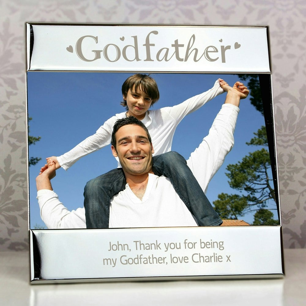 Personalise this fantastic Silver Godfather Square 6x4 Frame with any message over 2 lines of 30 characters each, to appear at the bottom of the frame.