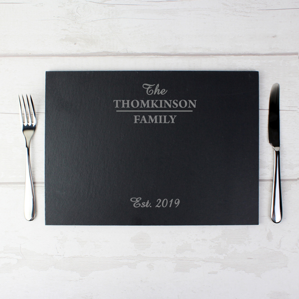 Personalise this Family Slate Board with a surname up to 15 characters and a message over 2 lines. Line 1 can hold 15 characters and line 2 can hold 30 characters.