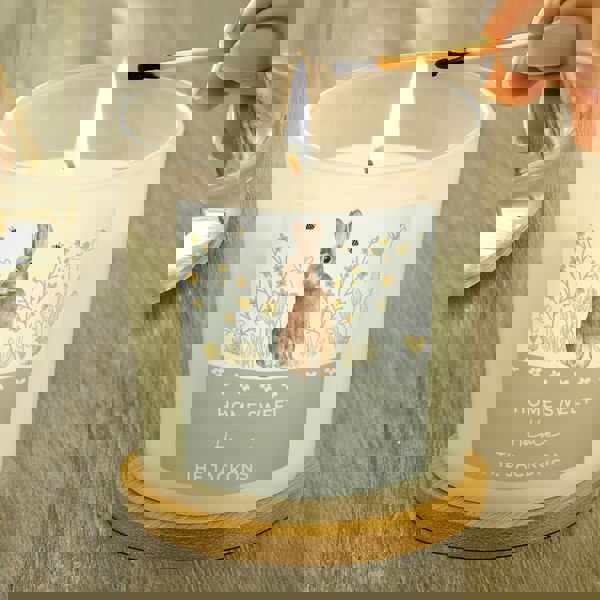 Welcome spring into your home with our Personalised Spring Bunny Scented Candle Jar.