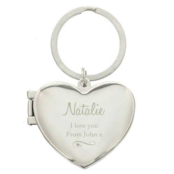 Personalise this silver finish Heart Shaped Photo Keyring with any name up to 12 characters and any message over 2 lines, with 20 characters per line.