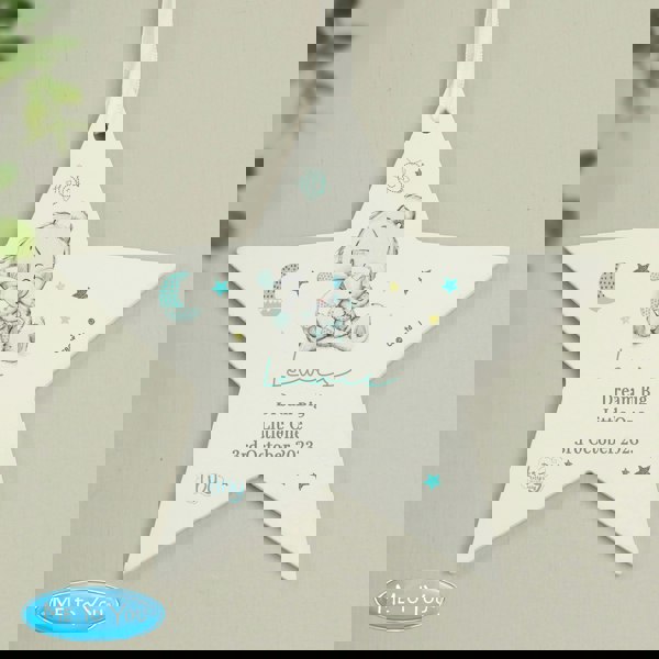 Our Personalised Tiny Tatty Teddy Blue Wooden Star Decoration can be used as a stylish hanging decoration, or as a unique and thoughtful gift tag.