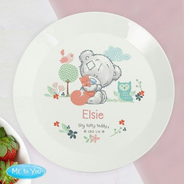 Personalise this Tiny Tatty Teddy Little Bud plate with a name up to 12 characters long.