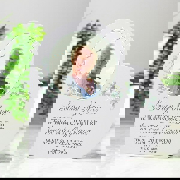 This personalised memorial heart ornament is a touching way to honour, and include a beloved family member who is unable to be present for the special occasion.