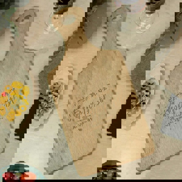 Please note as the chopping board is a natural wood product, colour and grain may vary from board to board. This may also cause the engraving to appear slightly darker or lighter in places, however the surface should be smooth and even.
