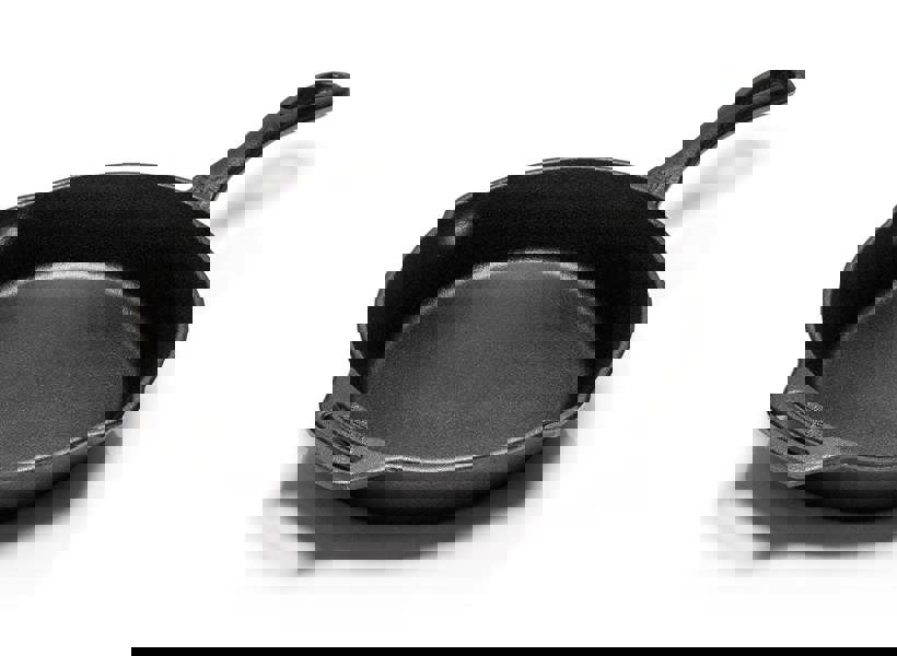 The high-quality cast iron with its outstanding heat distribution can be used immediately and is easy to clean thanks to the pre-seasoned surface. The durable and sturdy skillet has a natural anti-adhesive effect that you will improve at each use, for a protective layer forms. Moreover, cast iron stores heat well, which is why you can serve your meals directly in the skillet.
