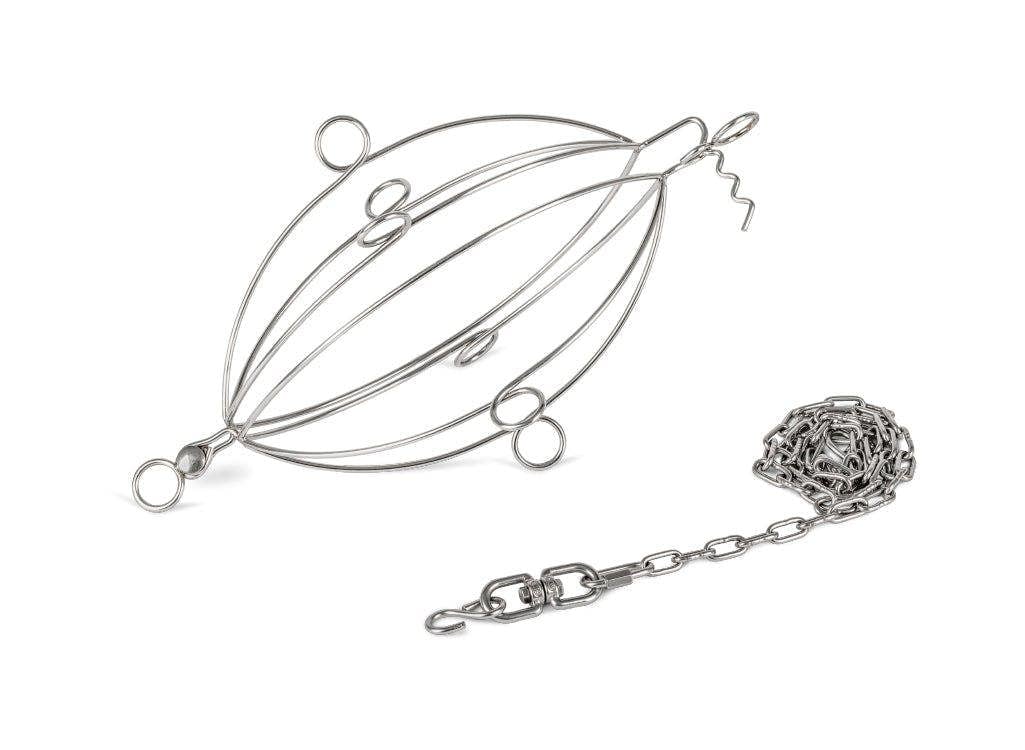 Material: Stainless steel Dimensions when assembled (H x W x D) (approx. ): 35. 5 x 20. 2 x 18. 5 cm Grill basket weight (approx. ): 238. 5 g Weight chain with accessories (approx. ): 183 g Length of chain with hook and swivel: 0. 9 m
