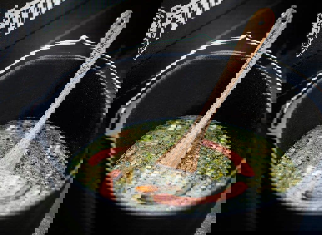 Thanks to the flat scraping edge slightly arching to the end the Petromax wooden spatula ensures lifting your food as well as scraping on the surface of Dutch Oven and co.