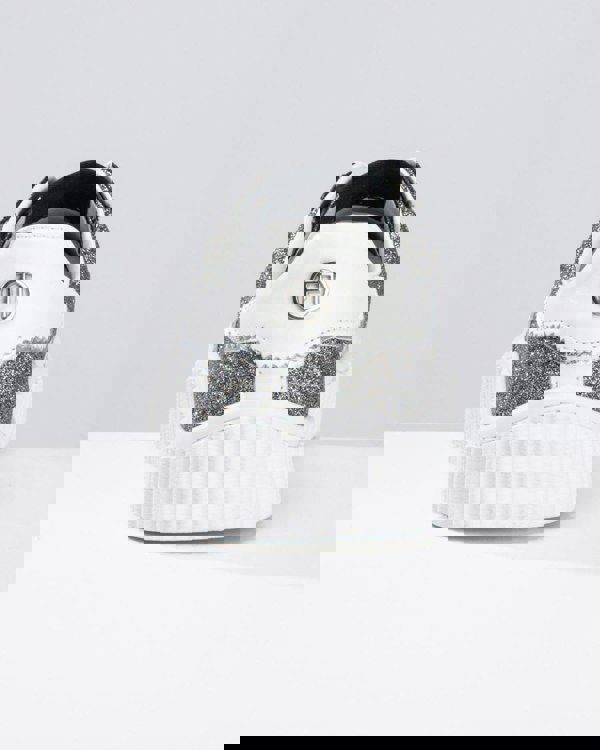 Lace up glitter trainers with metallic glitter details and serrated sole.