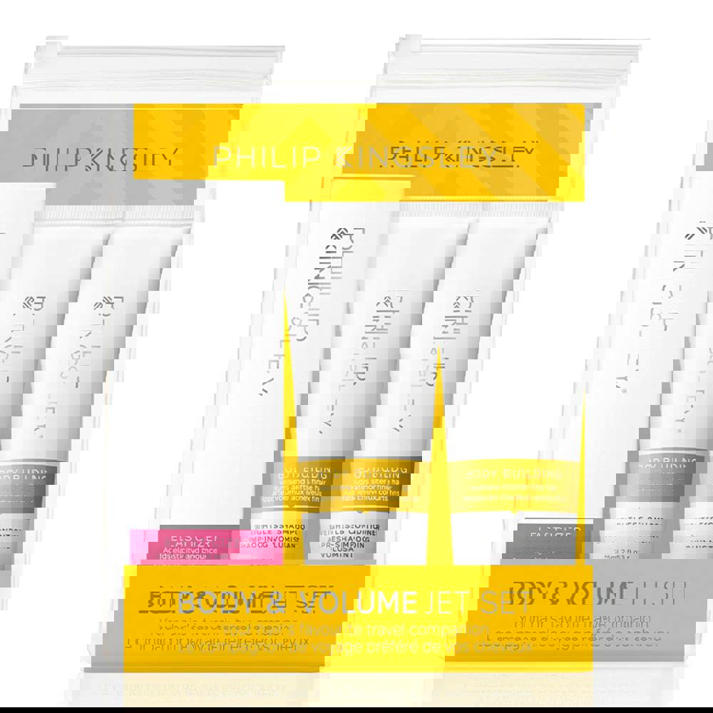 The Philip Kingsley Body & Volume Jet Set adds body, volume and shine to fine, limp flyaway hair plus de-tangling without adding weight. This 3 step adds volume and shine with the Body Building Travel Shampoo Combined with the Body Building Travel Size Conditioner. Finish off your on-the-go hair care routine with the award winning Elasticizer hair mask treatment.
