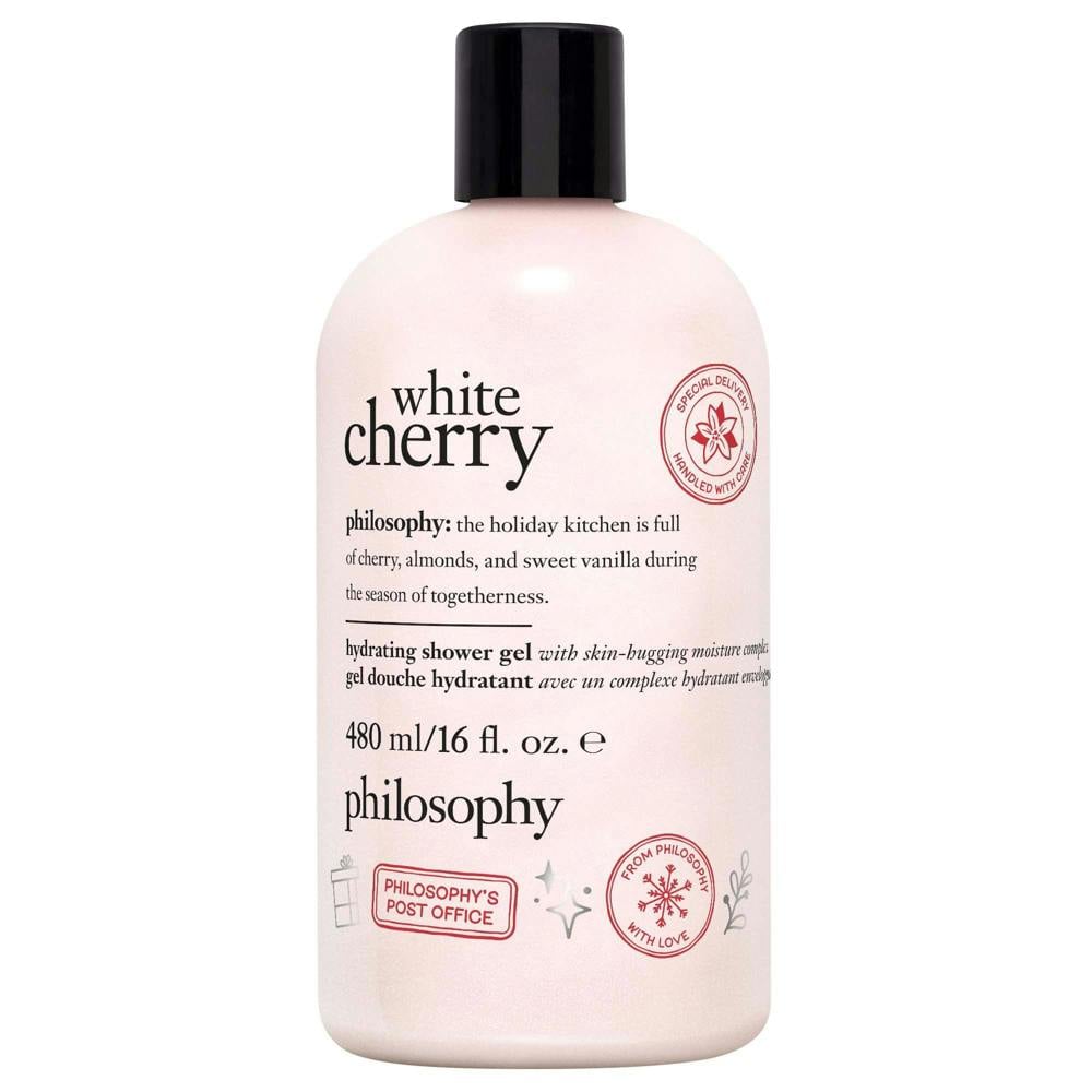Giftable cheer comes once a year. 'Tis the season for sharing a special delivery with our magical philosophy limited edition 480ml white cherry hydrating shower gel, bubble bath, & shampoo. Let the joyful body care begin with the scent of cherry, warm almonds, and sweet vanilla in the season of togetherness.