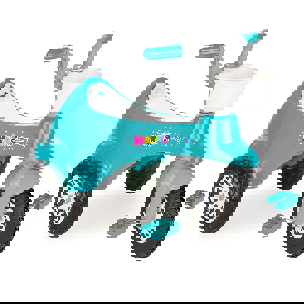 This cheerful and colourful pedal powered tricycle is lightweight yet robustly made and full of fun. It features three large wheels, a storage area underneath the large seat, and it also has a further storage area at the back and also comes with a large front basket. Suits ages 3 years +. Maximum rider weight capacity: 35 kg. Dimensions 66 x 44 x 49 cm.