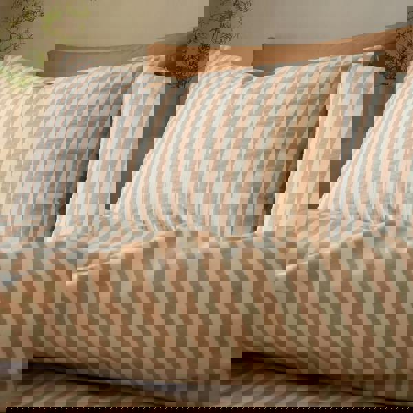 Transform your room into a serene retreat with this soft touch stripe bedding, featuring earthy tones that bring a sense of tranquillity. The carefully crafted stripes offer a subtle yet sophisticated pattern, blending seamlessly with any decor while adding a touch of rustic elegance.