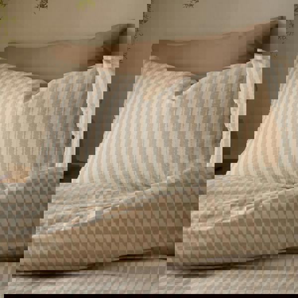 Transform your room into a serene retreat with this soft touch stripe bedding, featuring earthy tones that bring a sense of tranquillity. The carefully crafted stripes offer a subtle yet sophisticated pattern, blending seamlessly with any decor while adding a touch of rustic elegance.