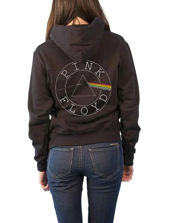 An official licensed ladies cotton Zipped Hoodie featuring the Pink Floyd 'Circle Logo' design motif. This high quality Zipped Hoodie is available in a black colourway. Comes in a wide range of sizes from X-Small through XX-Large, subject to availability.