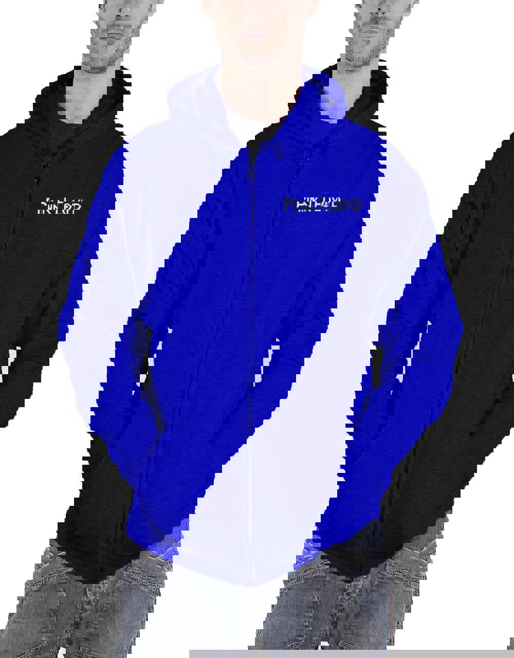 An official licensed Zipped Hoodie featuring the Pink Floyd 'Metal Heads Close Up' design motif. This high quality Zipped Hoodie is available in a blue colourway. Cotton zipped hoodie with pouch pockets and front/back printing. Comes in a wide range of sizes from small through XX-Large, subject to availability.