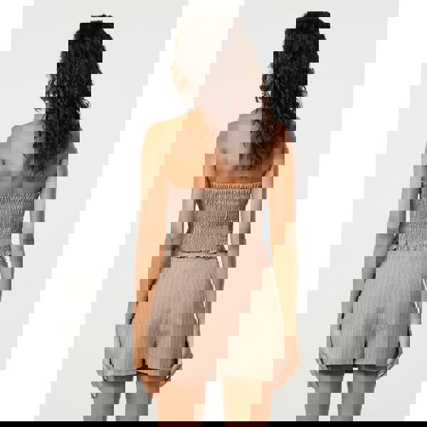 The pinstripe set of your dreams has just landed. Pair this Bustier Pinstripe Button Top with its matching Pinstripe Skort Slit Front Skirt