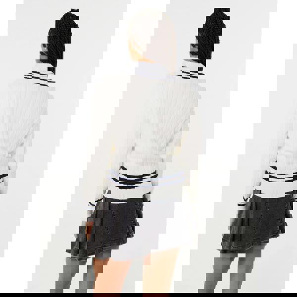 The Contrast V-Neck Teddy Jumper by Pink Vanilla features an elegant cabling throughout, giving a textured and stylish look