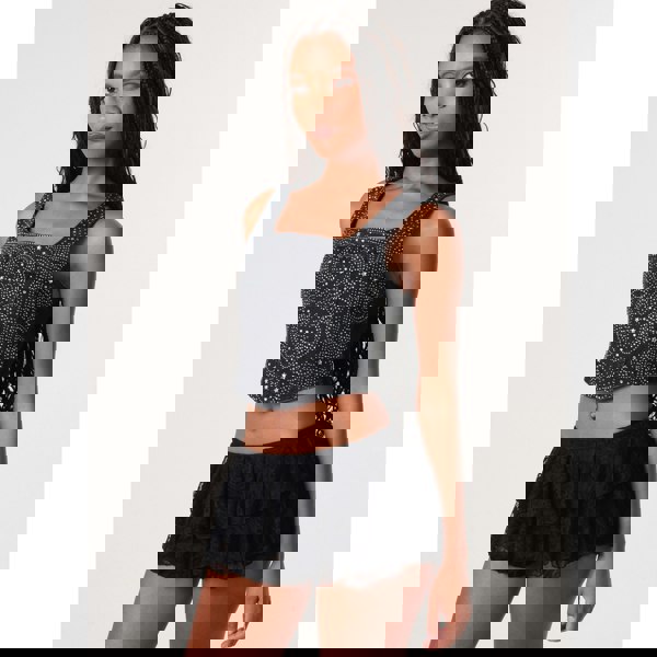 Make a statement in this Diamante Denim Corset Top. Perfect for a casual night out