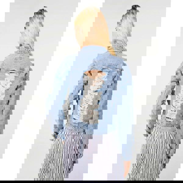 A denim jacket is a must-have in everyone's spring/summer wardrobe. Add to the cart this Distressed Cropped Denim Jacket and be the coolest on the streets!