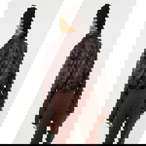 Enjoy layering in cooler weather with this Faux Leather Puffball Jacket by Pink Vanilla
