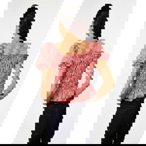 We're loving this gingham trend. This cute top features a cropped length and puff sleeves, perfect for a day at the park with your bestie