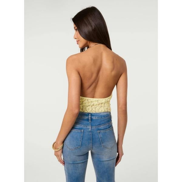 Bring a statement finish to evening looks with the Pink Vanilla Lace Bodysuit With Halter Gold Trim. Cut in lace with a sleeveless silhouette, it’s shaped with a cowl neckline and a halter-style gold trim. A gold necklace detail sits at the neckline, keeping the look clean and self-contained for nights out.